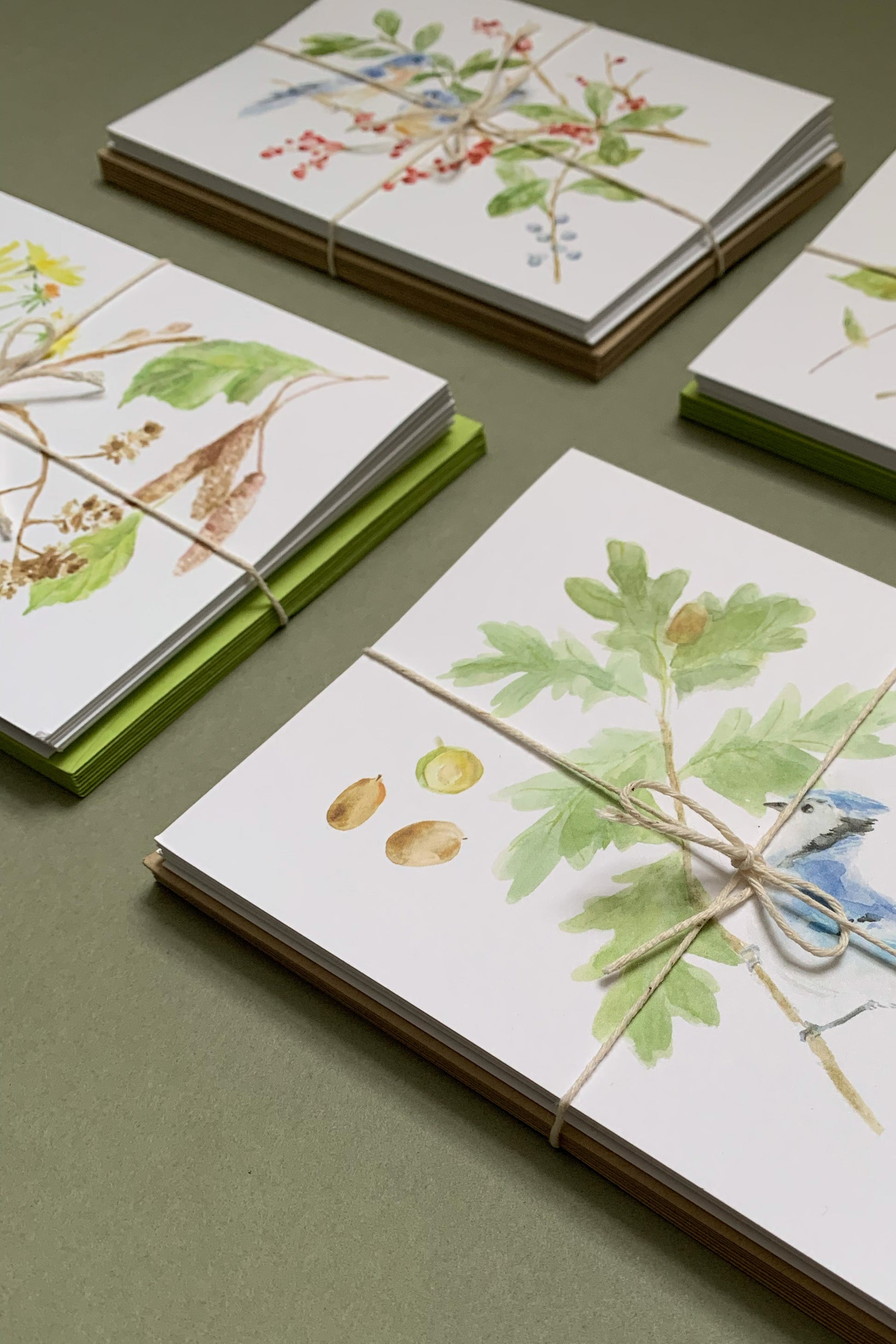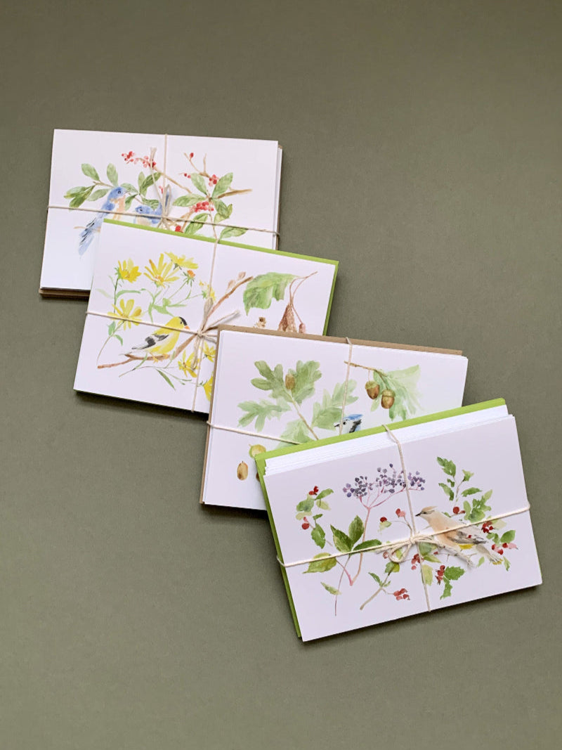 Celebrate the vibrant connection between birds and their habitats with this beautiful set of 8 cards, featuring 4 unique bird species paired with the native plants that sustain them. Each design is thoughtfully hand-painted in delicate watercolors, showcasing the charm of these beloved feathered friends and the flora that nurtures them.